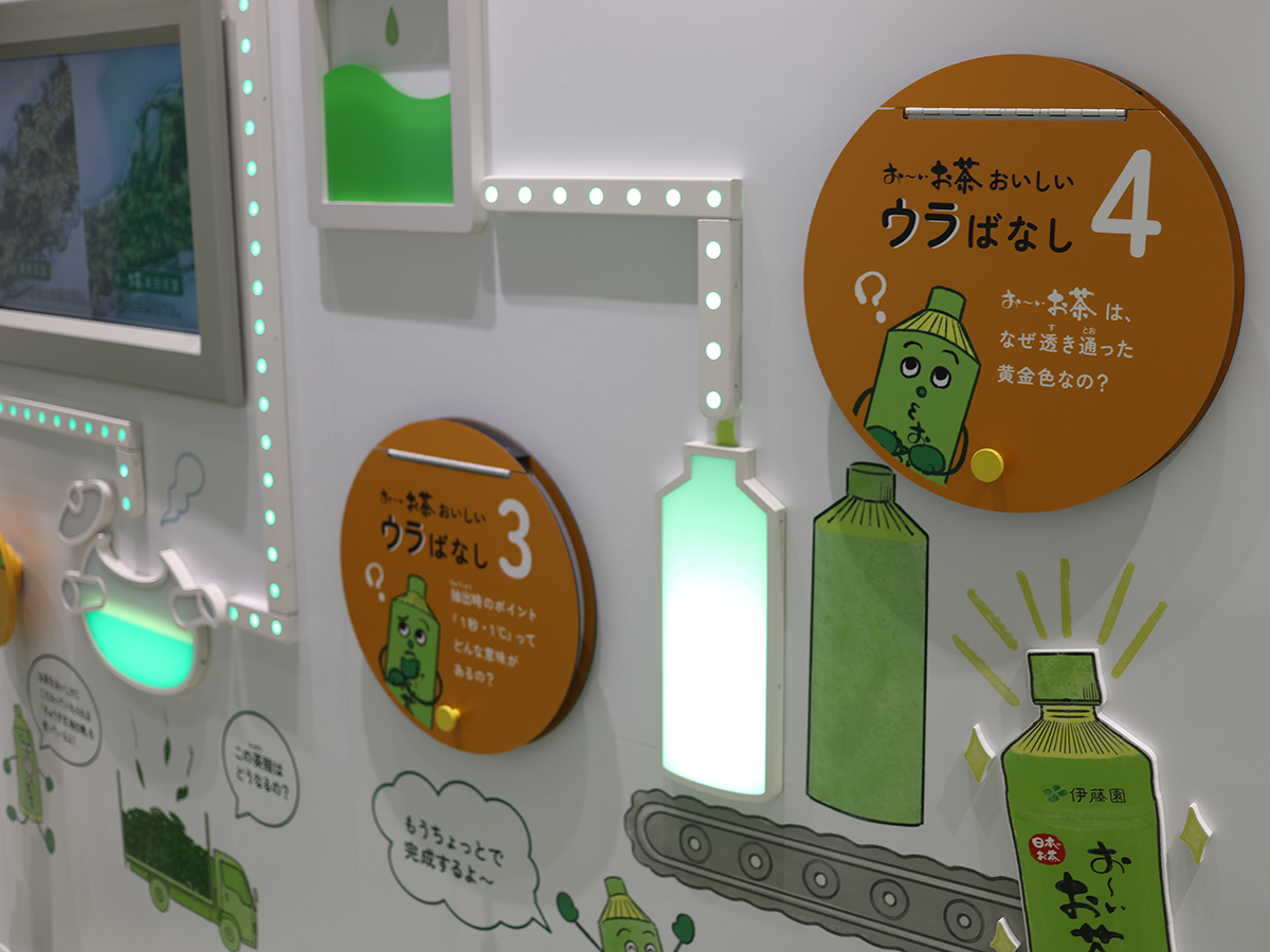 LED演出手回し装置 ハンドルを回すと、LEDの光が製茶の各工程に合わせて順に点灯する展示装置を製作いたしました。 製造の流れを視覚的に理解できるよう設計しており、来場者が楽しみながら学べる体験型の装置となっています。 手を動かすことで光の演出が展開されるため、記憶にも残りやすい演出となっています。 infomation Date. 2024 Purpose. 施設内展示 Site. 新橋